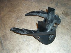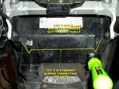 7)FENDER TRIMMING: THE STOCK FENDER IS USED TO RETAIN THE TRUNK AREA ALSO KEPT IS THE HOLDER CLIPS FOR THE SUPPORT BAR BUT IT MUST BE TRIMMED ENOUGH FOR THE INSTALL OF THE UNDERTAIL SECTION. FOR CUTTING, IT IS RECOMMENDED THAT YOU USE A DREMEL TOOL WITH PLASTIC CUTTING TIP I USED IT WITH VERY GOOD RESULTS, BUT YOU CAN ALSO USE A HACK SAW BLADE OR SOMETHING SIMILAR. YOU BASICALLY HAVE TO CUT FENDER AT LEAST AS HIGH AS THE FINISHED EDGE AND ALSO ROOM FOR SIGNALS. IT'S NOT CRITICAL TO CUT PERFECTLY SINCE THE NEW TAIL COVERS ALL OF THIS. WEAR SAFETY GLASSES FOR ALL CUTTING PROCEDURES!!!